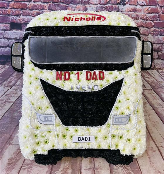 A 2-d flat lorry front. Made from Chrysanthemum.