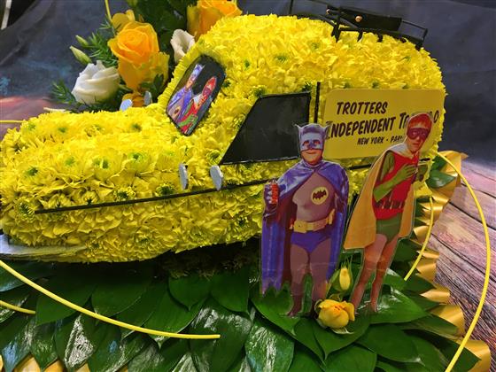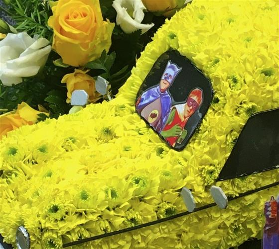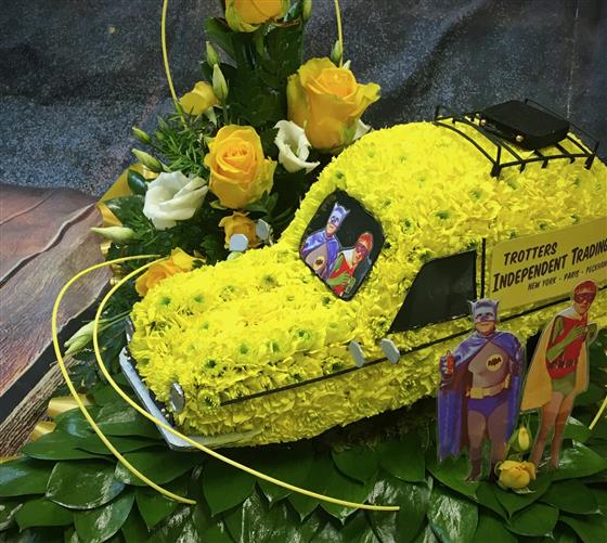 A 3-d Del Boys van made with Chrysanth and matching sprays