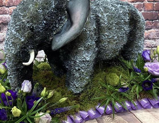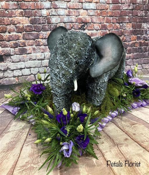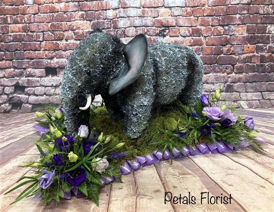 A 3-d elephant one a 21" base. Made with Chrysanth and matching base to your requirements.