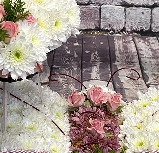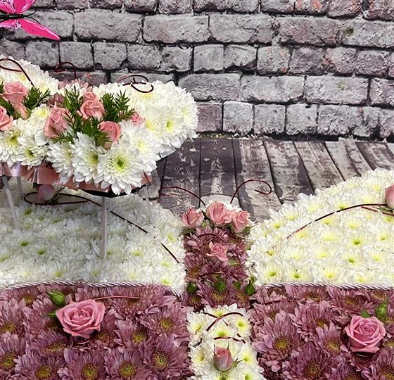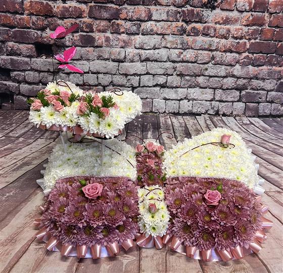 A butterfly tribute with a difference. Double layer tribute of butterflys.Made from Chrysanth and carnations.Colours could be to customers choice.