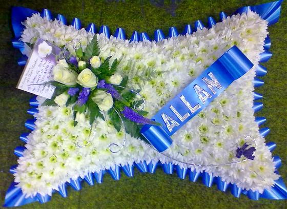 A based pillow with matching spray standard size 15". Silver letters can be added for names