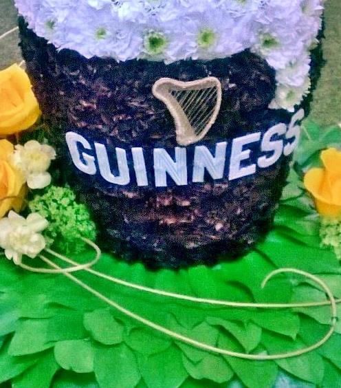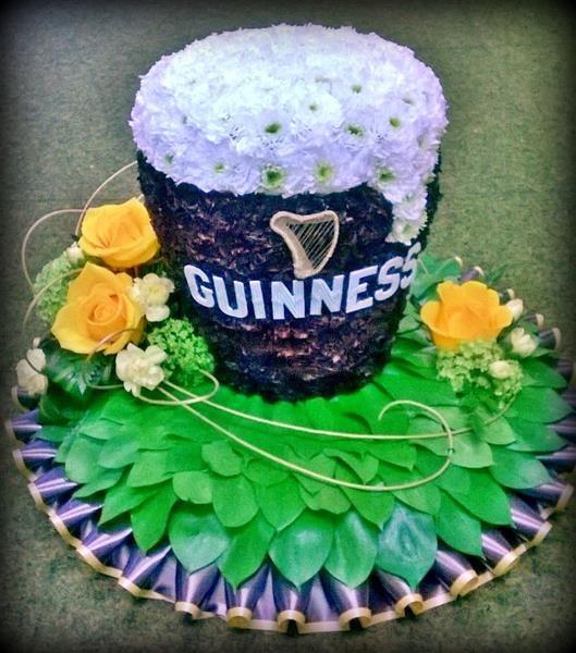 A 3-d tribute of a pint of Guinness. Based in Chrysanth and sprays to match.