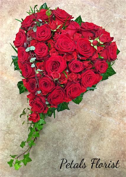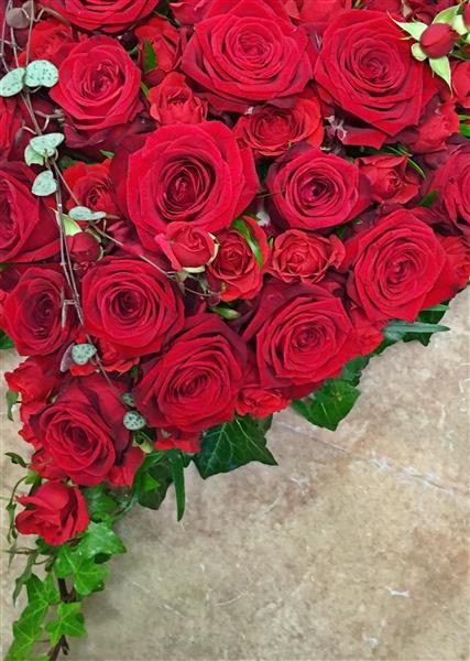 A beautiful red Rose heart tribute.Size 12" with natural Ivy surround.Larger sizes available, please contact the shop for prices.Other colours available.