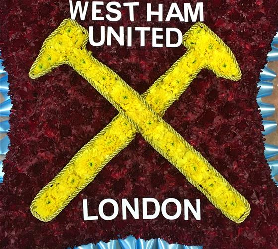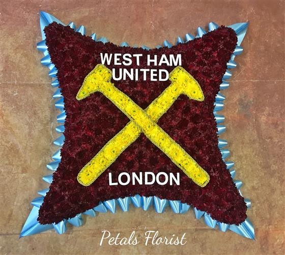 An 18" based cushion with the WestHam Hammers design. Four days notice required.